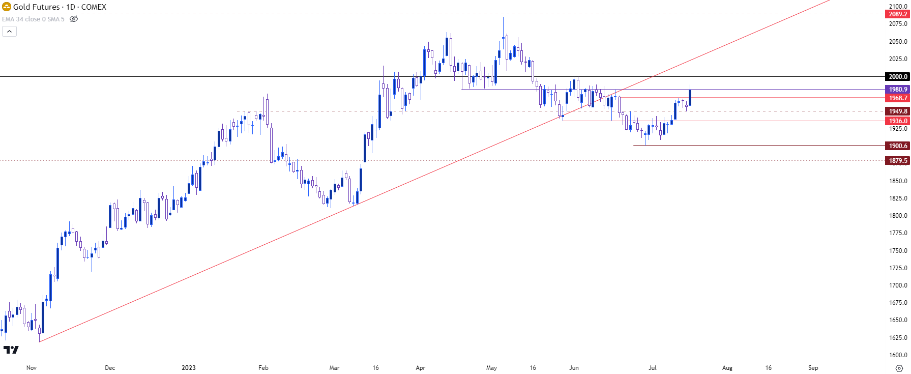 这导致几周前在1900关口附近对更低的低点进行了测试。就在那时,空头开始停滞不前,导致周线图上连续第二次出现十字星,形成更高的低点,这引发了上周的看涨走势,让多头重新掌握主动权。